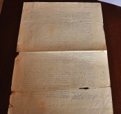 Rather fragile and with some damage – fraying, tears, dsicoloration and some small loss. Overall intact, complete, and totally readable still.