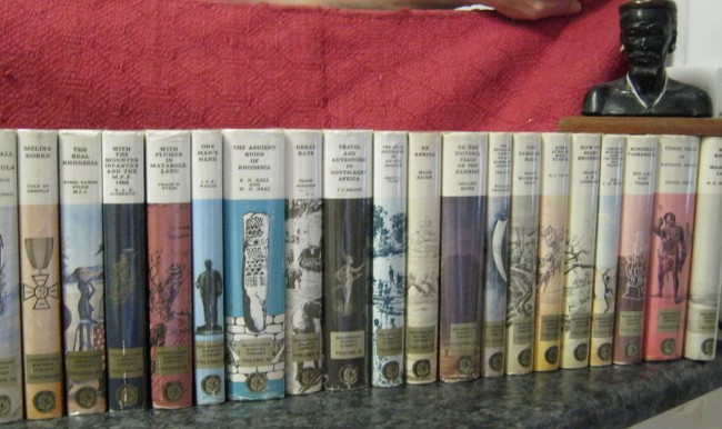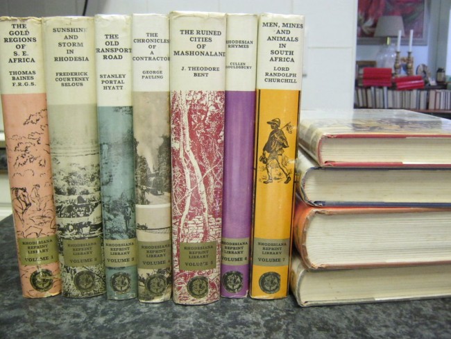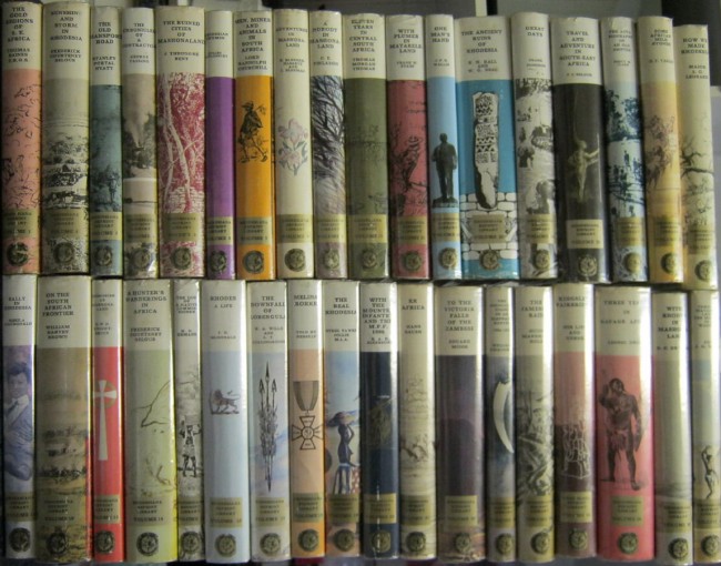 A complete set of 36 volumes of the GOLD SERIES of the Rhodesiana Reprint Library, all in dust jackets, some with minor wear, some dust jacket spines a bit sunned, some slight scuffing at top & bottom edges of dust jackets, a sprinkling of foxing (mainly on the page-edges), some end-papers browned, a couple with bookshop labels, but no ownership marks, inscriptions or signatures. Dust jacket of volumes #25 & #26 a bit damaged, all volumes excepting #1 are now protected by plastic.