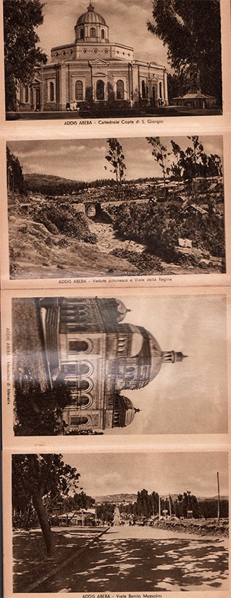 32 photographic views of Addis Ababa folded leporello style into a hardcover volume with a pictorial cover, map of Africa as endpapers, slightly worn at the edges, the photographs are in very good condition.