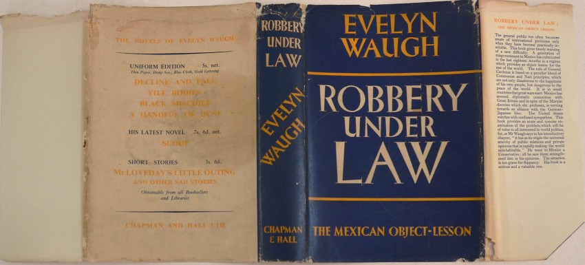 A near fine copy in the original fresh blue cloth with bright gilt lettering on the spine. Internally very clean and unmarked with mild offsetting to the endpapers and two small inoffensive abrasions on each of the front and rear pastedowns. In an about very good dustwrapper which is price-clipped and has some edge chipping, most noticeably an 8mm. deep piece missing at the top of the rear flap. The rear panel is stained. There is a tissue reinforcement on the verso of the wrapper under a frayed area at the top of the spine. Still a better than average copy of this very scarce dustwrapper and altogether a nice copy. Please see the images which illustrate condition.