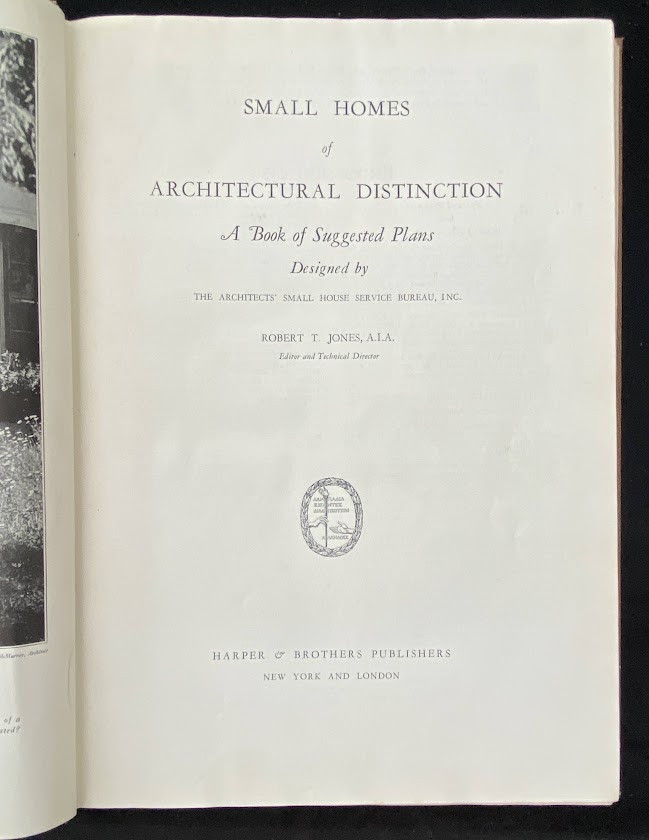 Robert T. JONES. Small Homes of Architectural Distinction A book of suggested plans. New York & London: Harper & Brothers, 1929. Folio (12 ¼ x 8 5/8 inches; 311 x 219 mm). Pp. [i-x]; 1-128. Illustrations throughout. Original brown cloth, lettered in gilt (head and foot of the spine rubbed).