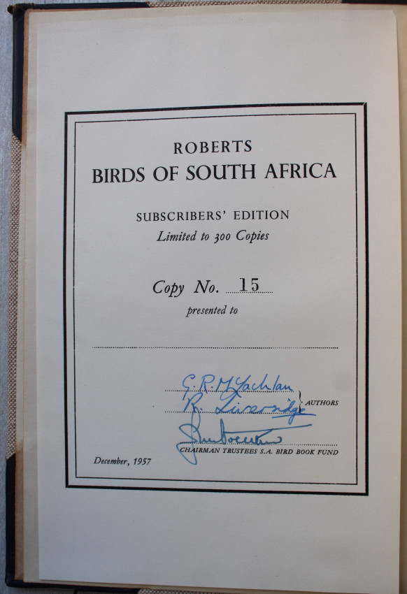 The Subscribers' Edition limited to 300 copies. This is copy 15. Signed by the authors McLachlan & Liversidge. 1957 edition. 504 pages. Half leather and cloth binding with the title in gilt to the spine.