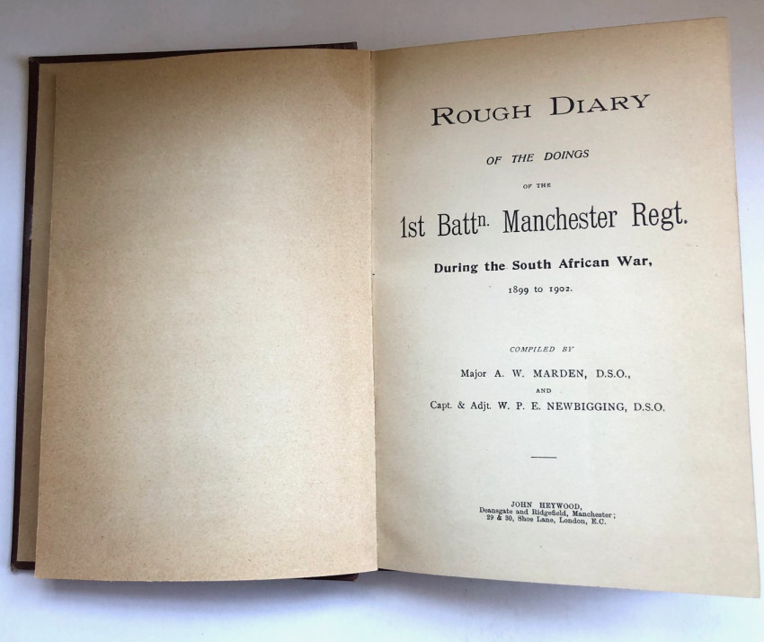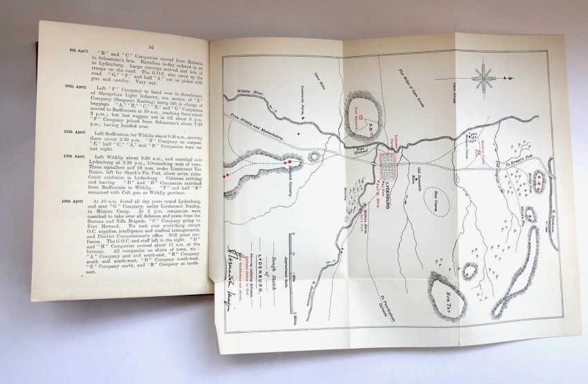 The very scarce first and probably only edition of this title which appears to have never been reprinted or republished. Small 8vo. 151pp. Diary format. 4 folding maps. In the original brown cloth with black lettering and a gilt decoration on the front cover. SABIB Vol. 3 Page 256. where only 2 copies are located. Some light wear and markings to the cloth but generally a very good or better clean tight copy. Both front endpapers have small numbers on them and the front free endpaper bears a light rubber stamp of The Sons of England Patriotic Society Historical Research Committee.