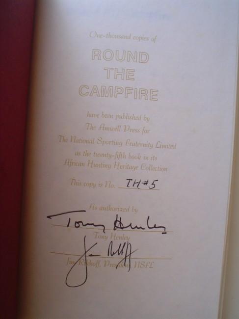 First edition, Number 5 of 1000 copies signed by Tony Henley and Jim Rikhoff. With special photographic section from the author's private collection. 187 pp. 8vo. Patterned black leather. Fine. 25th book in the African Hunting Heritage Collection published by the National Sporting Fraternity Limited.