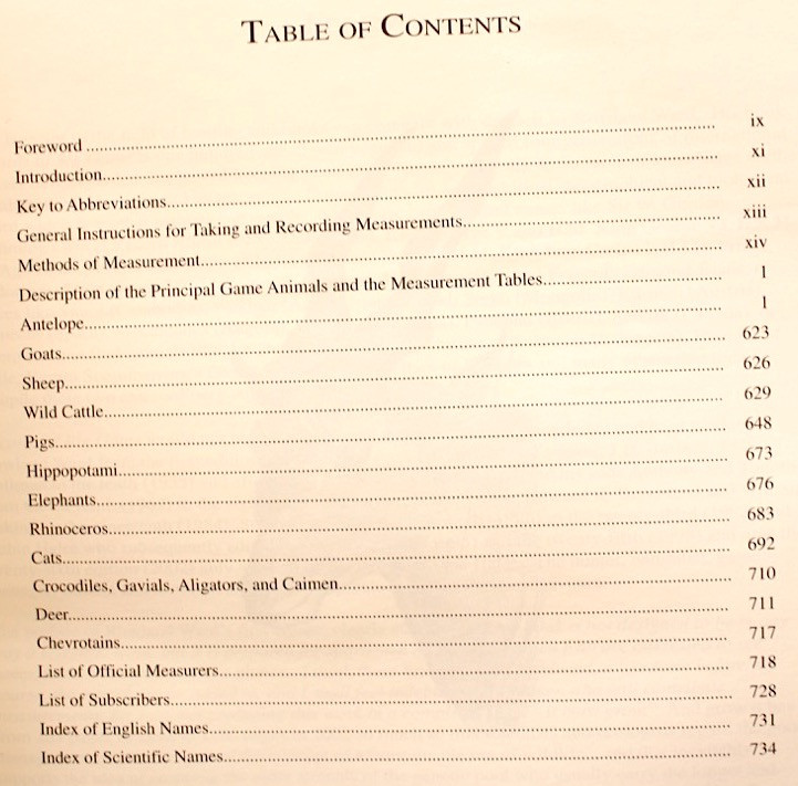 Volume I dedicated exclusively to records of African Big Game, Volume II (not included) Big Game records for the rest of the world.