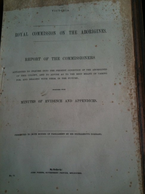 Large folio, XVIi + 129pp. being a Report of The Commissioners appointed to enquire into the present condition of the Aborigines of this colony, and to advise as to the best means of caring for, and dealing with them in the future.