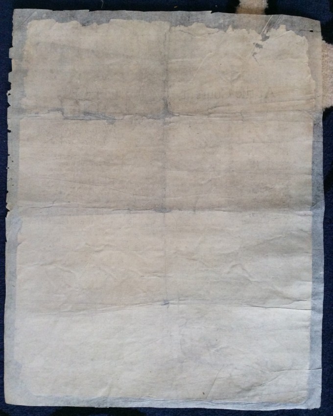 Condition: laid down onto old tissue, some loss at old folds, margins frayed, some surface soiling.
