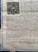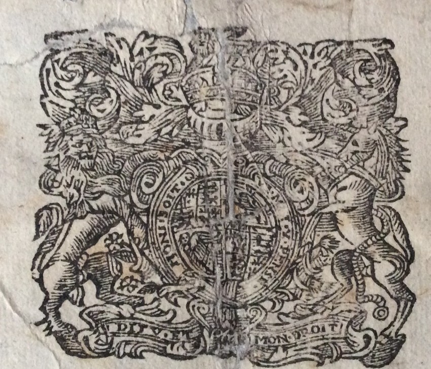 Printed broadside (14 ¼ x 11 ¼ inches approx.). Woodcut royal arms at head, large decorative initial.