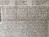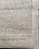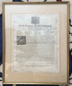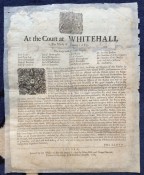 From the Middle Ages in England and France it was believed that scrofula, or "the King’s Evil," could be cured by the Monarch’s touch; ceremonies were held in which hundreds of the afflicted would gather to be touched, and "healed." The present broadside, setting the dates for a number of such ceremonies, is rare on the market: no copies are listed for sale, and none have appeared at auction.