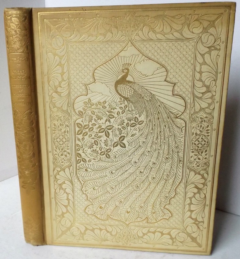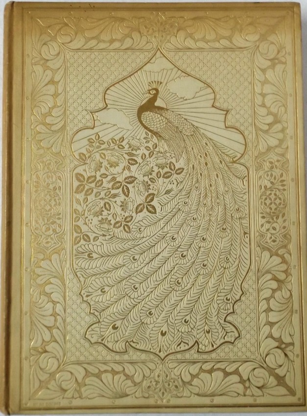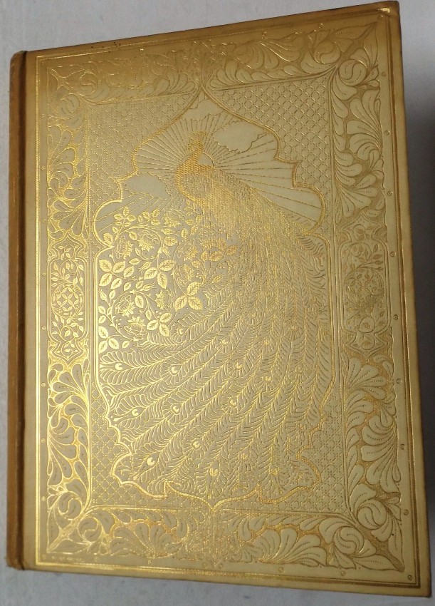 Extravagant gilt peacock design to front board, gilt decoration to spine.