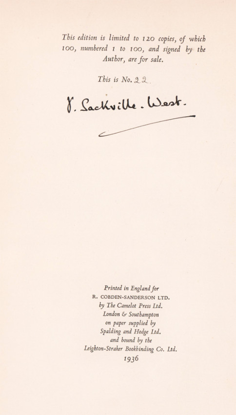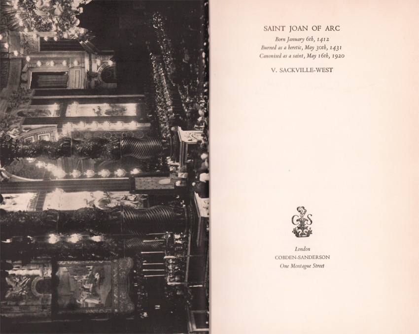 Loosely inserted is a typed letter in an envelope addressed to the Lord Berwick, Attingham Park, Shrewsbury, S A L O P which reads: Dear Lord Berwick, It was very nice to hear from you again after so many years and especially to receive so charming a letter as you wrote me about my book. I am so glad that you fell I have made Joan seem a human person and not a sort of waxwork. Yours sincerely Vita Nicolson ( in green ink.)
