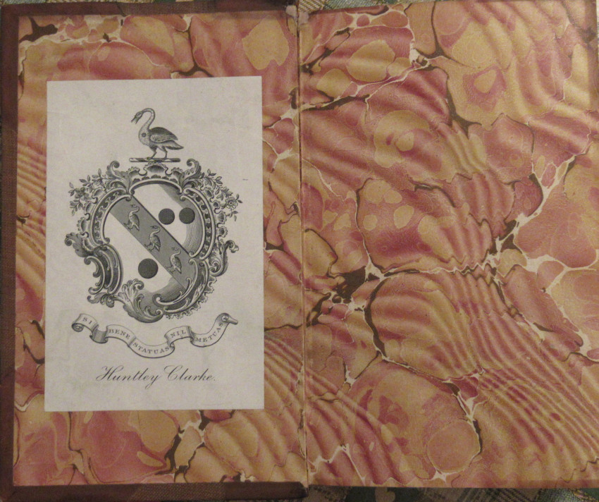 Half brown leather and matching brown boards, marbled endpapers with ex Libris label to front paste-down .Five raised ribs to spine with date 1829. Top edge gilded.