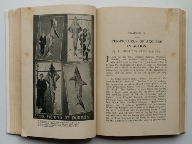 A quaint little volume, in pictorial boards, 315pp., listing the fish types found in Cape and Natal waters, and with many black and white illustrations/photographs.