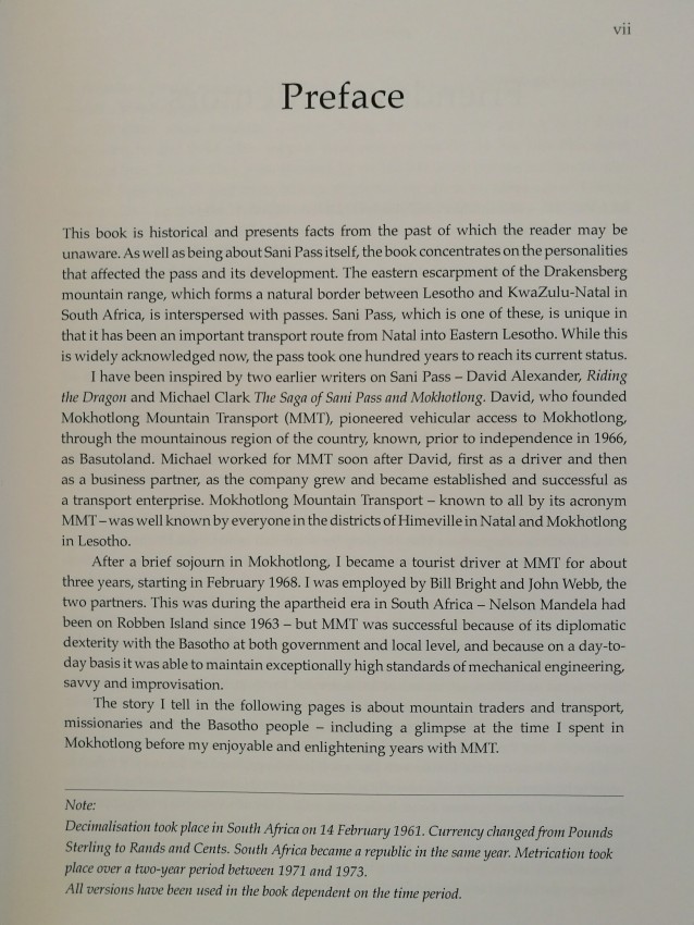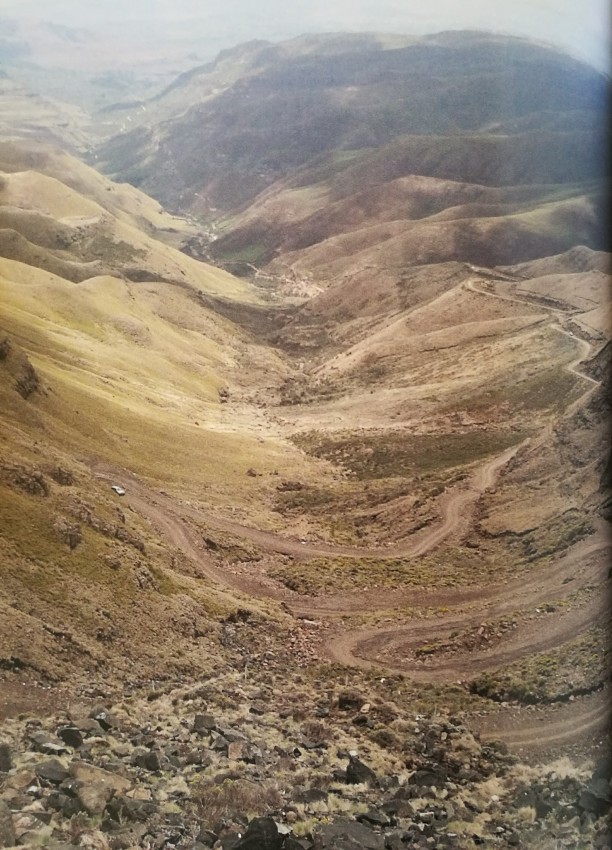 "The Sani Pass has evolved over one hundred years to become a challenging and dangerous road . . . used by muleteers and later motor vehicles for moving goods between Natal and eastern Lesotho over the Drakensberg Mountains."