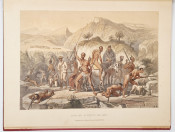 Originally published in brown paper wrappers with a pink cloth back - it is on this wrapper that the author's names appear but they are not repeated on the title page (this required Mendelssohn to consult Harts Army List for 1853 to ascertain their names. See following note), it was published both plain (the lithographic plates are single or double-tinted) and hand-coloured. No date but the text page is dated March 8th, 1854 at the foot.