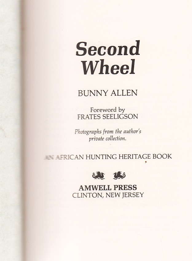 Limitations page reads: One thousand copies have been published by the Amwell Press for the National Sporting Fraternity Limited as the seventeenth book in its African Hunting Heritage Collection. This is copy is no.498 as authorised by the author and president of NFSL.