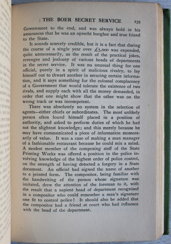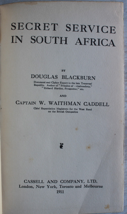 Its chapters cover the early secret service in the Cape Colony, secret service pioneers, the illicit liquor trade and both illicit gold and illicit diamond buying, gun-running and the Boer secret service under Dr Leyds.