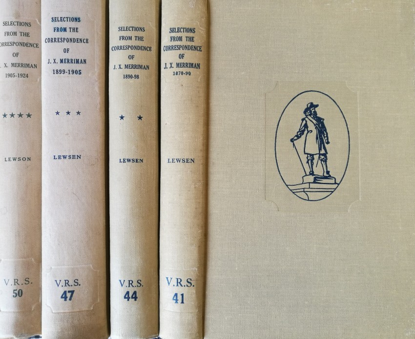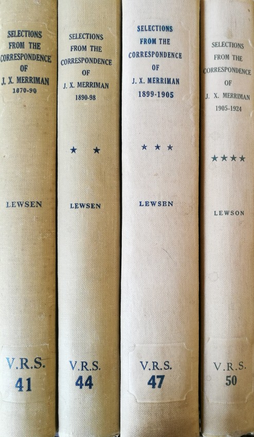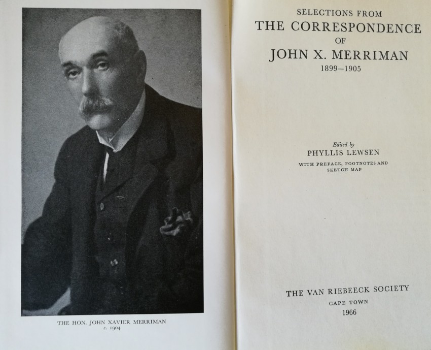 - "[This volume] deals with the final two phases of Merriman's long career. The first of these was from 1906 to May 1910: the period of Merriman's greatest political achievement, in which he became the Cape's last and perhaps most distinguished Prime Minister and was chief maker (with Smuts) of South Africa's Union. The second was his brilliant epilogue as 'candid friend' - and formidable critic - of the Botha Government, and 'father of the Union Parliament'. The dividing point was the choice of Botha as the first Prime Minister of South Africa: in Merriman's words (1917): 'my ejection from the post that in the natural course of events I should have occupied'. He did indeed have the stronger claim . . . "