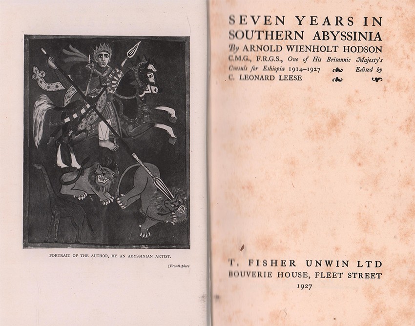 Czech (Dr. Kenneth) An Annotated Bibliography of African Big Game Hunting Books 1785-1999 page 130: As the Great War erupted in 1914, Hodson was ordered to leave his regiment and travel as British Consul to Abyssinia. He arrived in Addis Ababa in 1915, after a journey through the rugged hinterland of the country. On one excursion to the forested region near Mount Marsabit, he hunted rhino and elephant. "I had a horrible sensation of utter helplessness, as I realized that even with a .600 express, it is impossible to stop an elephant at close quarters." Mountain nyala were also hunted in the Chilalo Mountains, though none were bagged - the author was using a new rifle which he had not sighted in!