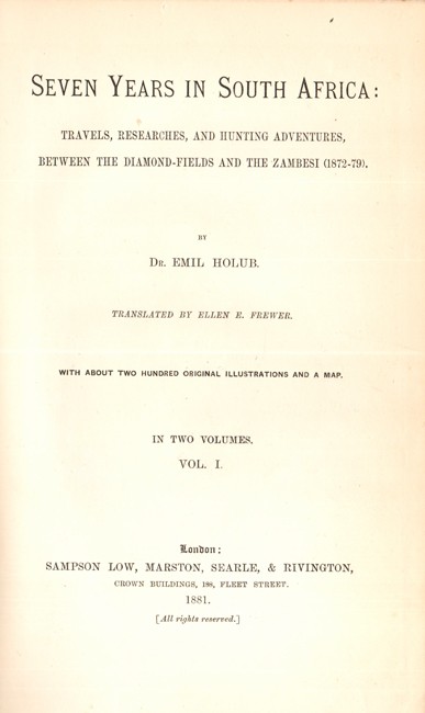 Holub was eminently qualified to undertake travel in the Africa of his day. He was a doctor of medicine, a zoologist, a botanist, a hunter and taxidermist, an artist and cartographer, an avid collector of specimens and, above all, a keen observer. Where Livingstone broke new ground Holub followed to consolidate, to record, to add detail to the broad canvas painted by his eminent predecessor.' Editor's note to the reprint edition, Johannesburg, 1975.