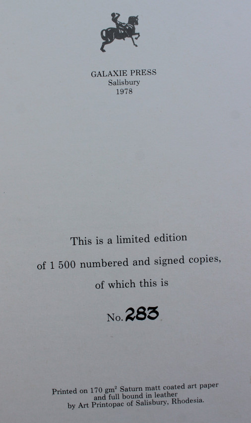 The war in Rhodesia had its origins in 1964, and continued in its preparatory phase through to 1972. It was in this year that it assumed its next phase, that of insurgency to the culmination and conclusion. It is a war that has torn and devastated the country, laagering the whites, scattering the blacks. For the whites it is a war of survival; for the blacks-some of them-a war of liberation. For most, though, it was a war of endless complication, divided loyalties, pain and terror. Although it was essentially a young man's war- on both sides- it has caught up the entire population, without discrimination, without regard for age or sex. It is these people--and their pain--that are depicted. Black and white, young and old. The sequence of these drawings records the transition from peace, through the initial tensions and overtures, training, preparation and separations, to the harsh face of war itself. Unpaginated text with poems and images from this period, and its consequences. (from the preface)