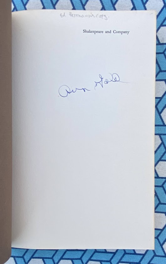 An excellent example of the first edition of this fascinating autobiography: actor Edward Herrmann's copy. The publisher's Shakespeare and Co are perhaps best known for publishing James Joyce's 'Ulysses'.