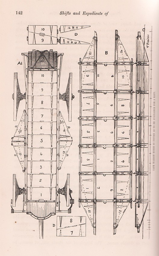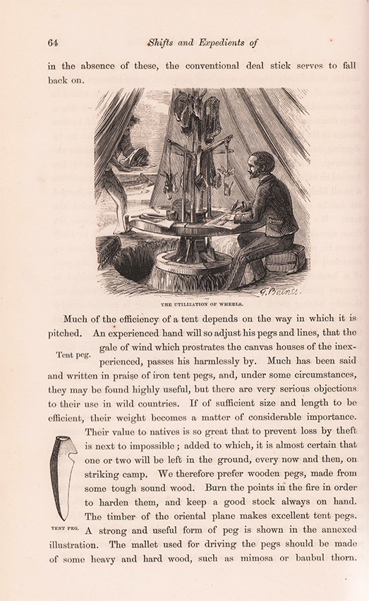 'William Lord and Thomas Baines intended Shifts and Expedients to be a wide-ranging manual of instruction on the art of surviving in, and enjoying, the great outdoors of the nineteenth century. Pooling their considerable experience of strange lands they produced an encyclopaedia of practical living for the aspirant explorer of a hundred years ago. Everything is explained: wagons and boats, horses and oxen, tents and firearms, hunting and fishing, observing and collecting, carpentry and metal-working, camping requisites, bush cuisine, medical improvisation, the best ways to cross rivers, to move heavy objects, to build huts. The work is lavishly illustrated with wood-engravings by Baines.' Editor's note to the facsimile reprint published in 1975.