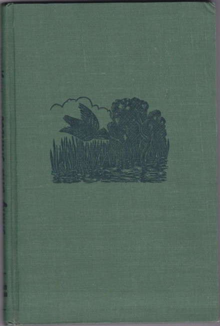 No dj. Dark green cloth-covered board with picture of a kingfisher diving into a river on the front cover and titles on spine all in darker green.