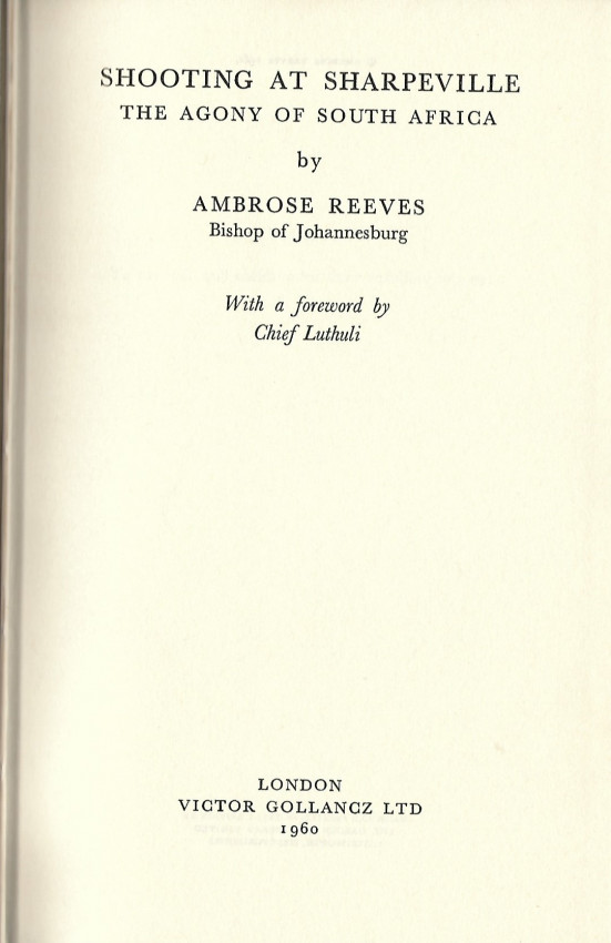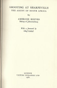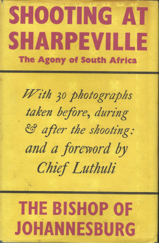Written before the verdict of the Commission of Enquiry was known. At the time of the shooting, the common attitude of the South African policeman was that "the Native mentality does not allow them to gather for a peaceful demonstration. For them to gather means violence. " Because of this attitude, when there was a gathering of Black South Africans on March 21, 1960 , protesting apartheid, in the black township of Sharpeville, near Vereeniging, South Africa, the police fired on a crowd of blacks, killing or wounding some 250 of them. This book, written by the Bishop of Johannesburg , gives background history, a recounting of the shooting, a report on the Commission of Enquiry, and a conclusion.