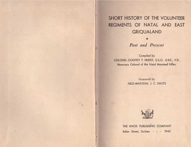 Colonel Hurst begins with the Port Natal Volunteers, established in 1837 and ends with units established to serve in World War I. Many of these units existed for only a short period of time, or were amalgamated into larger units.