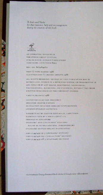 Light grey coloured end papers. 224 pages, distribution maps and full page colour illustrations by Graeme Arnott.