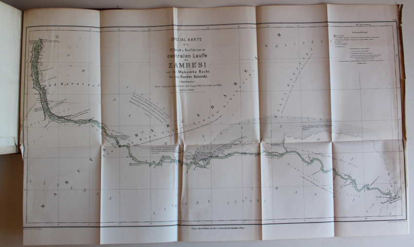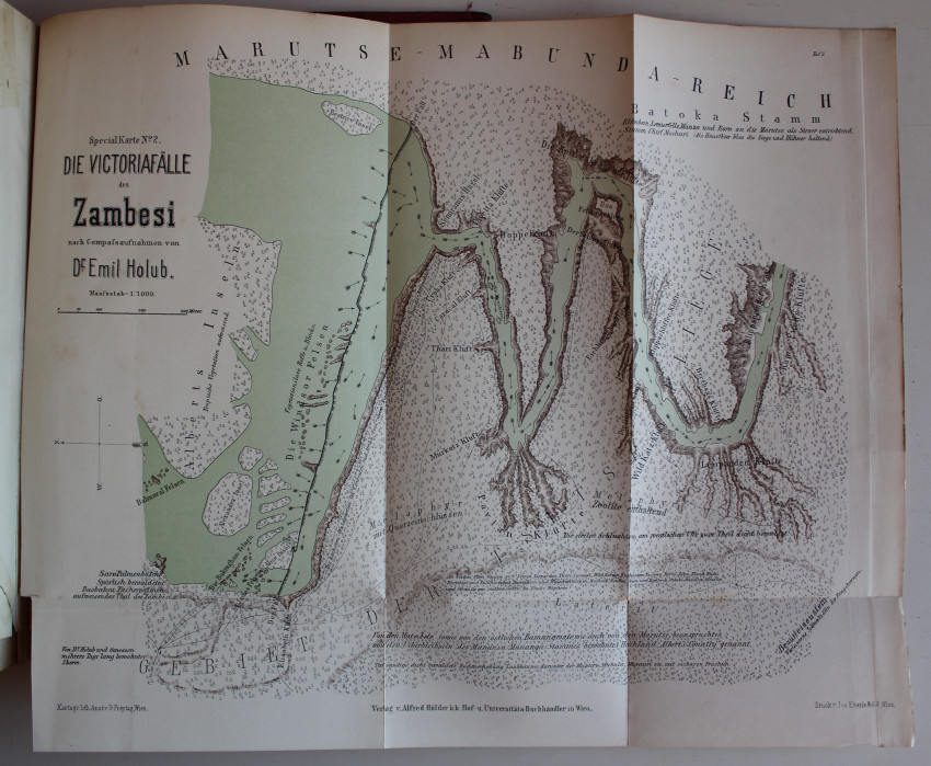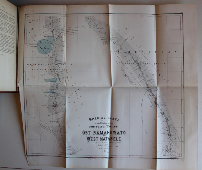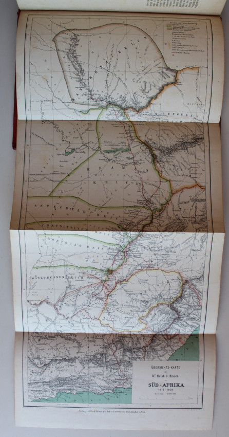 Pages 528 & 532. In the original pictorial red cloth. Frontispiece of Holub. Previous ownership on title page. Text in German. Four maps complete.