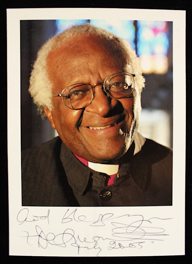 A signed photograph of the late Archbishop Desmond Tutu (7 October, 1931 - 1 January, 2022).