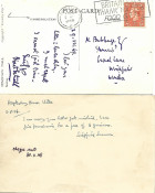 2. Siegfried Sassoon. Short autograph note signed on a hand addressed stamped postcard dated 11.5.46 giving permission (? for publication of a Sassoon poem) for a fee of 3 guineas. Appended by the recipient "cheque sent 30.x.48" - a rather belated response one would think?