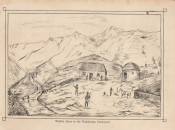 First edition:104 pages, published without a title page - catalogued from the pictorial front cover printed on blue paper, brown cloth spine, commercial advertisements as endpapers, 8 full page plates from sketches, a very good copy.