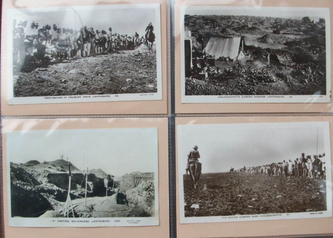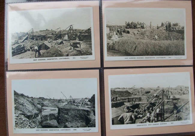 Sixteen authentic photographs by J Wood, covering Western Transvaal, featuring Diamond Mines and Principal Mines and Background History. Some are stamped on reverse - "Emagameni Collection" in blue. All postcards are marked J. Woods.