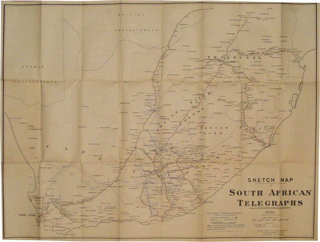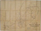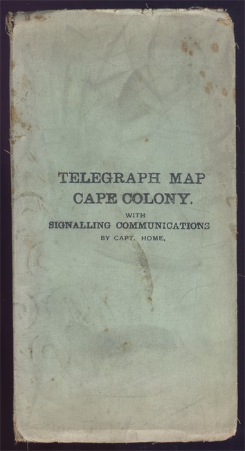 660 X 870 mm, mounted on linen, telegraph lines marked in red, folds into light green limp cloth covers which are faded and worn.
