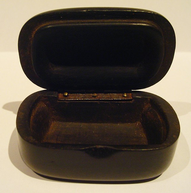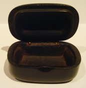 Made from a dark wood, hinged lid – cleverly made to clip closed without a clasp.