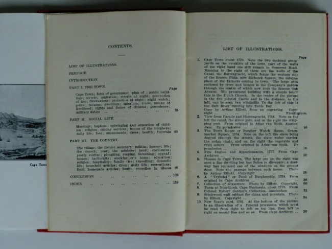 Condition: red boards good, top corners bumped, end-papers lightly spotted, fold-out frontispiece of Cape Town about 1770, contents clean, binding a little tender in places, otherwise good.