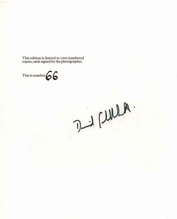 The limitations page at the back of the volume reads; This edition is limited to 1000 numbered copies, each signed by the photographer. This is number 66