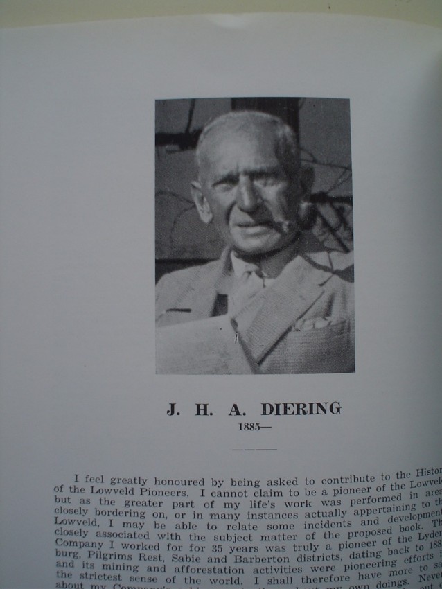 A softcover reference to around 36 pioneers of the Eastern Transvaal Low veld. 119 pages. White flexible glossy paperback cover, in good condition with pale green dust-wrapper.