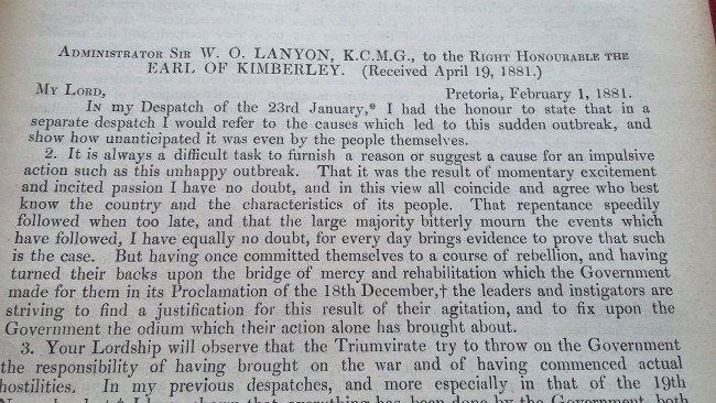 Analysis of cause of First Boer War. Sought after document in continuation of previous lot from this auction, dated March 1881.