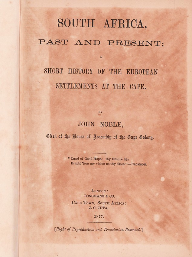 Mendelssohn (Sidney) South African Bibliography, volume 2, page 1066: 'This compilation affords a continuous narrative of everything "that is most noticeable in the Political History of the Colonies and States of South Africa" down to the first annexation of the Transvaal in 1877.'