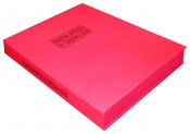 Contained in a fold-down back case of crimson cloth and black titling on the upper cover and spine, 550 x 430 mm.