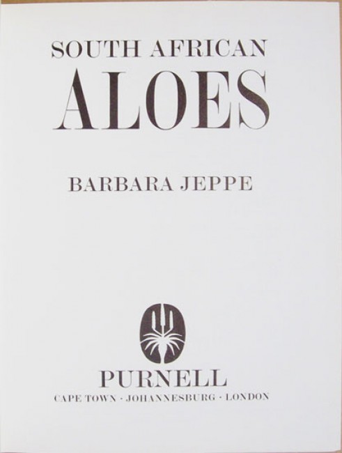 Original pictorial dust jacket. Original light green boards with dark green titling on the spine and the upper board. Decorated end papers. xxvii prelims, 144 pages, each of the 139 known species of aloe illustrated in full colour plus black and white drawings.