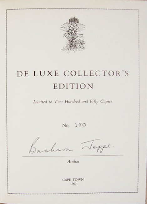 Copy number 150 of an edition limited to 250 copies and signed by Barbara Jeppe.