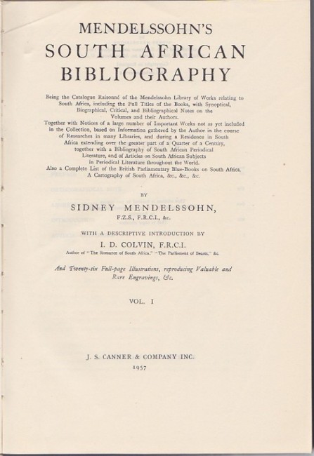 A catalogue of Mendelssohn's library of books relating to South Africa, including the full titles and biographical notes on the books and their authors.