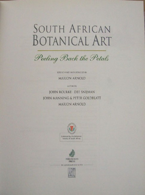 Contributing Authors: John Rourke, Dee Snijman, John Manning & Peter Goldblatt. Original dust jacket. Original dark green cloth boards with gilt titling on the spine and a decorative device on the upper board. Thick dark green decorated end papers. 216 pages, colour decorations on the prelim pages by Barbara Jeppe, frontispiece by Ellaphie Ward-Hilhorst, plus 63 numbered colour plates.