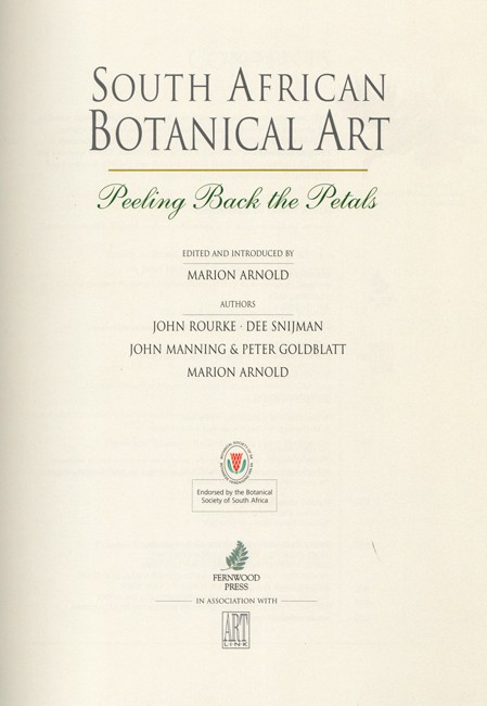 Editor’s note. ‘Remarkable images of plants created by the most talented of botanical artists, are housed in store rooms of botanical institutes and museums. Yet the oil paintings, etchings and watercolours of ‘fine’ artist – depicting the same plants – are located in art galleries. Why are plant portraits classified differently, and kept apart? Is plant imagery to do with science, or with art? Do the two ‘kinds’ of art ever meet? This unique and ground-breaking book metaphorically ‘peels back the petals’ to explore southern African plant portraiture and discovers the meanings ascribed to the genres of ‘botanical art’ and ‘flower painting’. Well known for their particular contributions to botany, art, and art history, authors Marion Arnold, Peter Goldblatt, John Manning, John Rourke and Dee Snijman examine plant portraiture in southern Africa over several centuries. They provide engrossing and sometimes unique revelations on a broad spectrum of issues, including species ‘discovery’, insect pollination, biological classification, specimen collection, plant naming, portraiture, and the manner and style of artistic representation. The texts are enhanced and liberally illustrated by works of some of the countless travellers, botanists an artists who have so passionately and meticulously recorded South Africa’s rich floral heritage.’