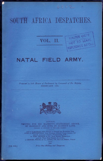 Natal Field Army. Presented to both Houses of Parliament by Command of His Majesty. [Cd. 457 & 458].